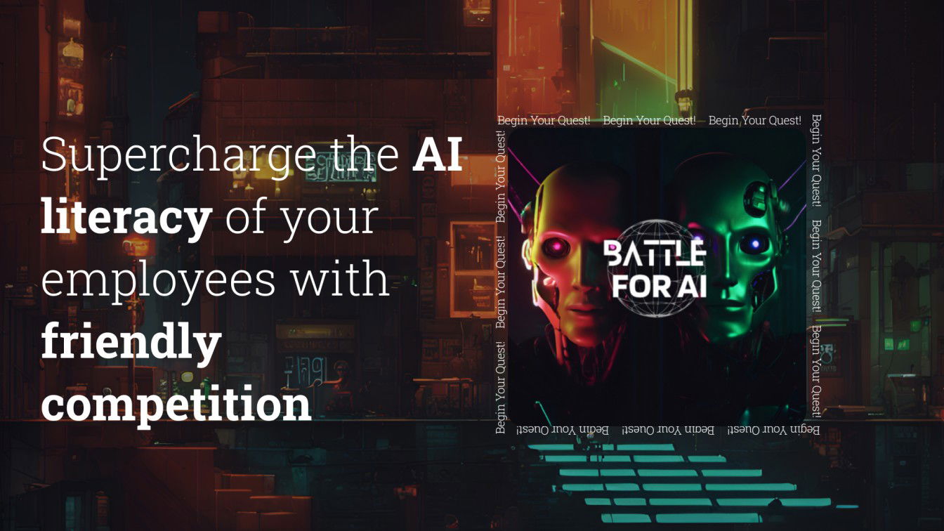 Let your employees have fun competing for the future of mankind in an exciting game, battling or allying with AI forces, all while learning AI literacy and responsible AI practices to help them comply with AI regulations.
